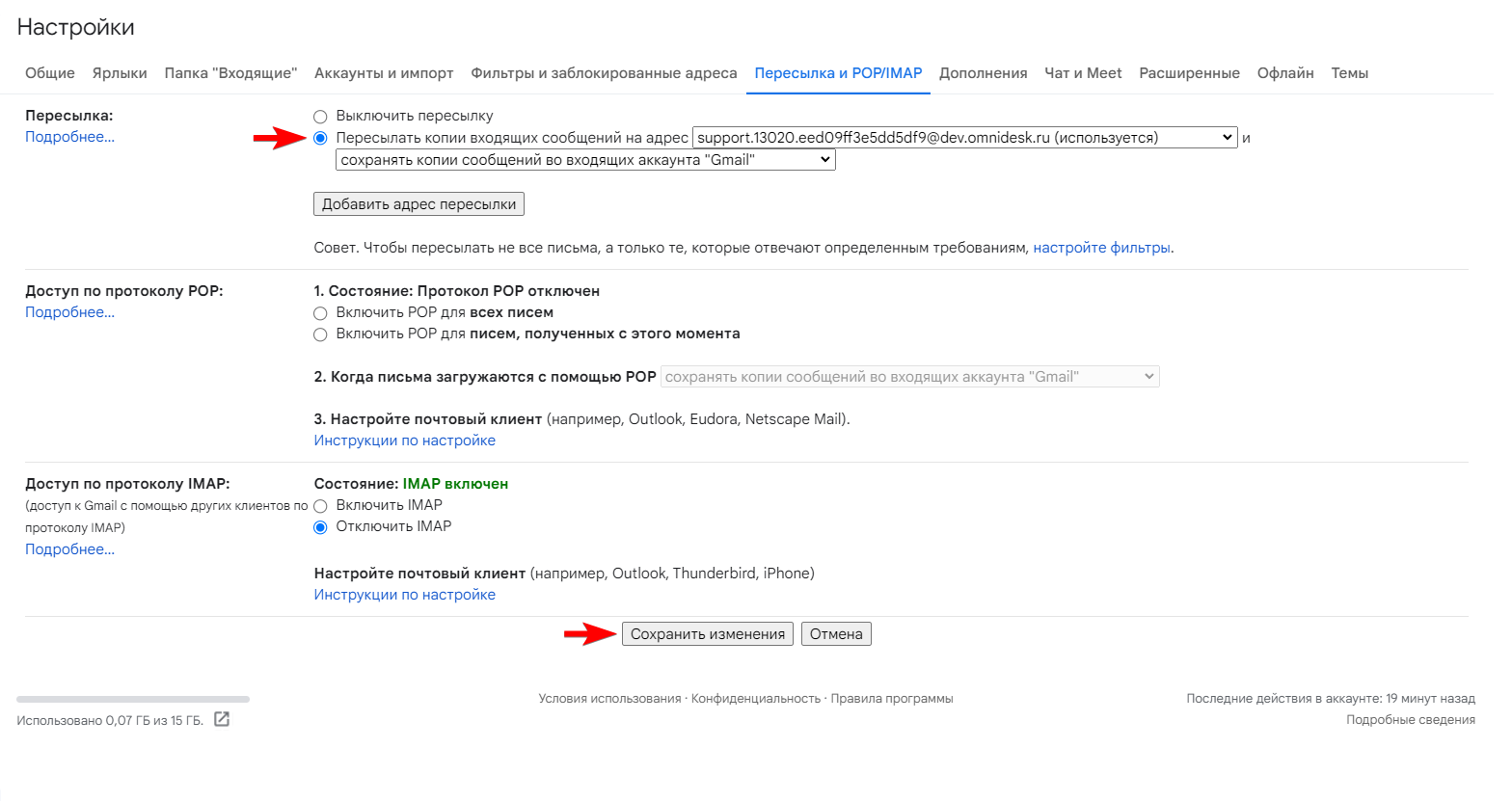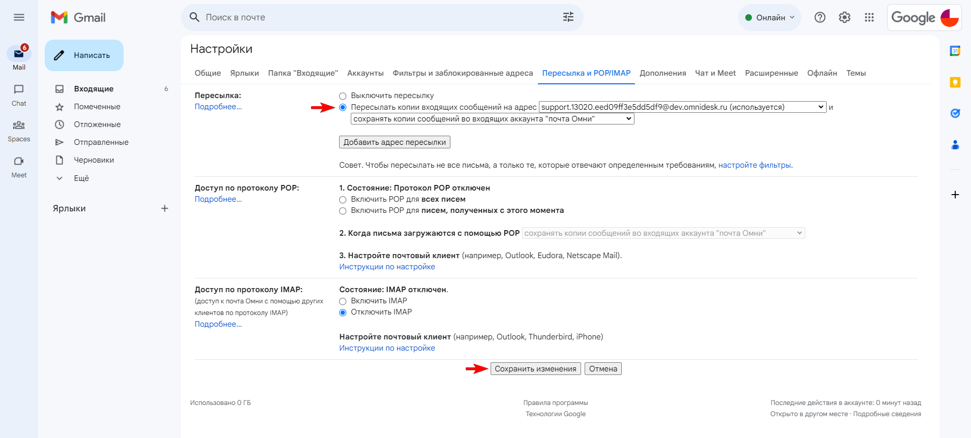 Не забудьте настроить пересылку в интерфейсе вашего почтового сервиса, чтобы письма клиентов поступали в Омнидеск.