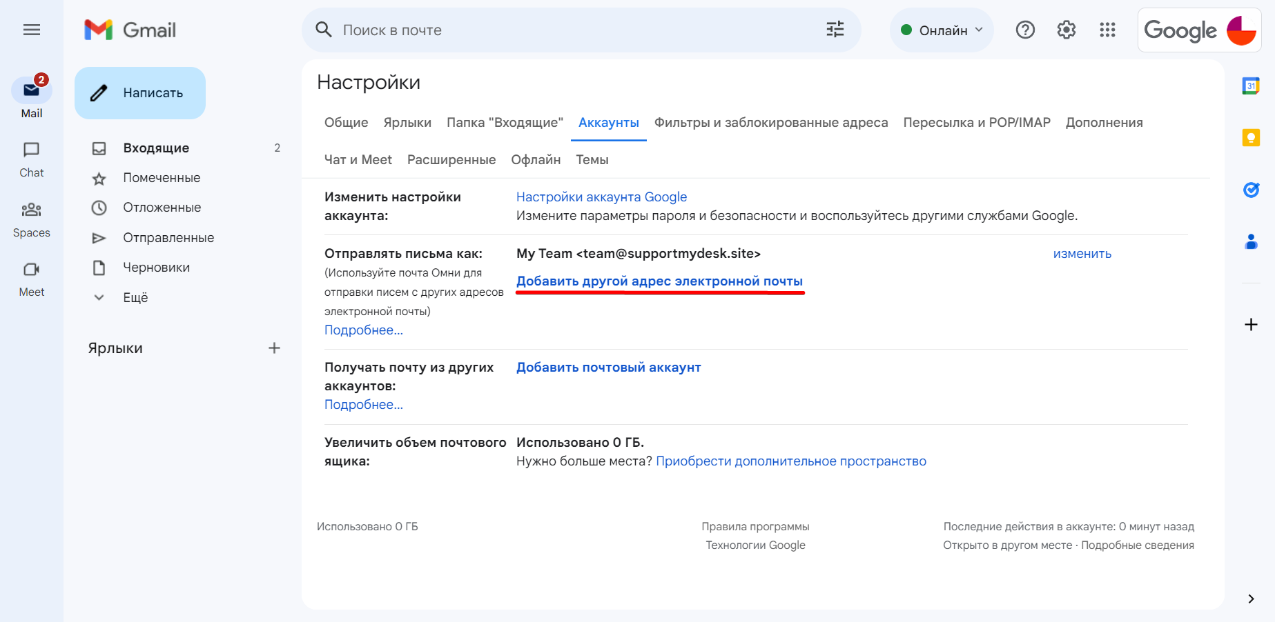 Подключение ящика Gmail через пересылку