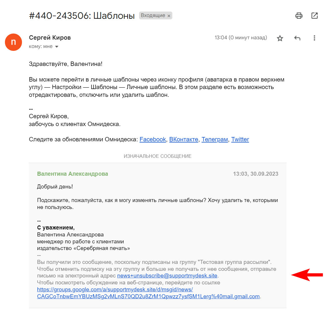 в. Перейдите в аккаунт сотрудника в Омнидеске, найдите письмо от [email protected] и подтвердите пересылку, пройдя по ссылке.