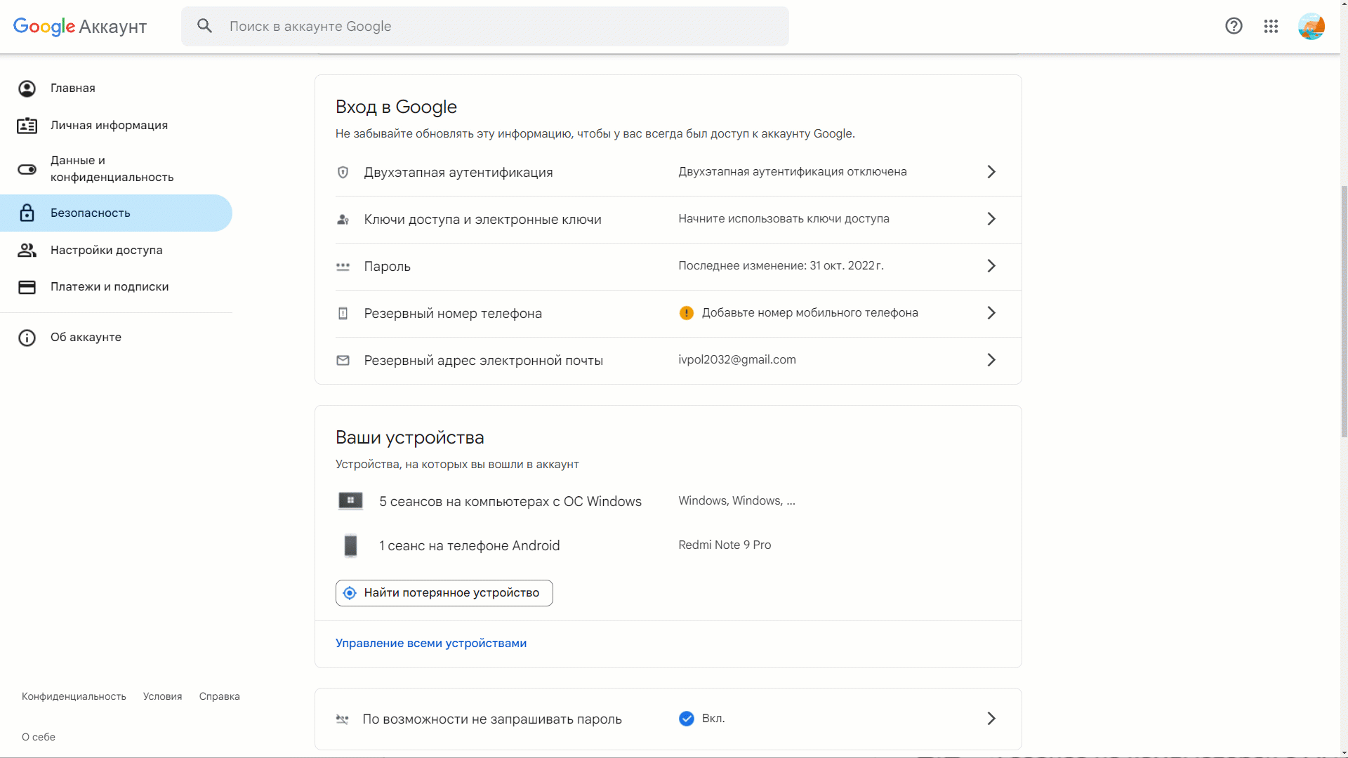 1. Откройте настройки вашего Google-аккаунта.