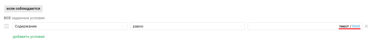В сообщениях, полученных через канал Email, можно включить опцию проверки с учетом HTML-разметки — это позволит находить фрагменты с тегами или стилями. В чатах HTML не поддерживается, поэтому в синхронных каналах в любом случае анализируется только обычный текст.