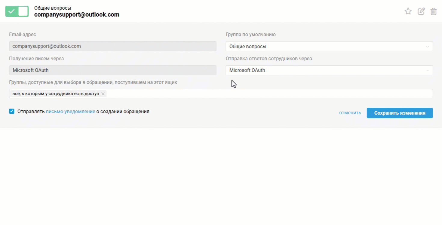 Если вы считаете, что причина ошибки устранена, нажмите кнопку «Обновить» — Омнидеск повторно попытается подключиться к ящику через Microsoft OAuth. В некоторых случаях может потребоваться повторная авторизация через форму Microsoft.